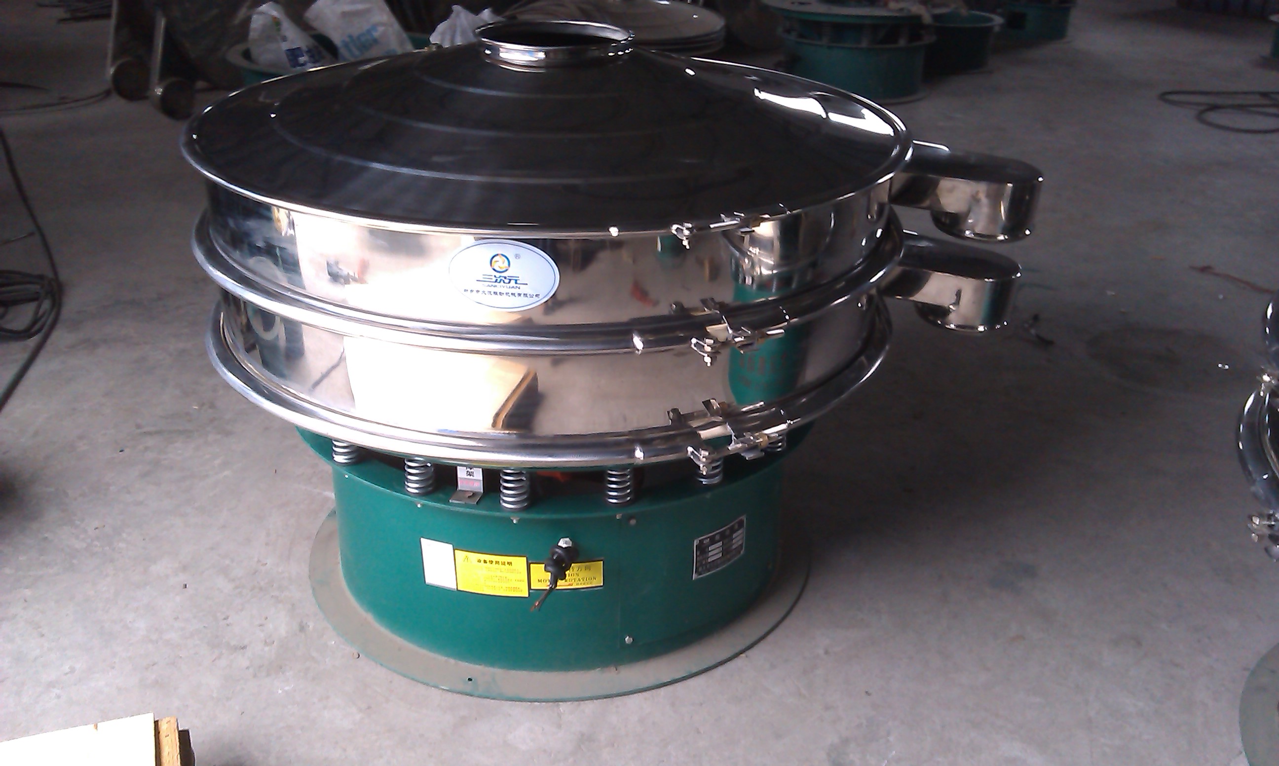 該振動(dòng)篩分機(jī)與物流接觸部分為304不銹鋼材質(zhì),底座為碳鋼材質(zhì),該振動(dòng)篩分機(jī)304不銹鋼部分內(nèi)外拋光,做工精細(xì)。