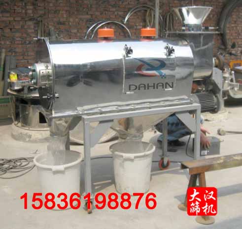 靈芝超微粉在氣旋篩粉機(jī)中如何進(jìn)行篩分作用?靈芝粉置于機(jī)體內(nèi),物料通過螺旋輸送系統(tǒng)后,和氣流混合、霧化進(jìn)入網(wǎng)筒內(nèi);通過網(wǎng)筒內(nèi)風(fēng)輪葉片使物料同時(shí)受離心力和旋風(fēng)推進(jìn)力,從而近使物料噴射過網(wǎng),由細(xì)料排出口排出,不能過網(wǎng)的物料沿網(wǎng)筒壁從粗料排出口排出。